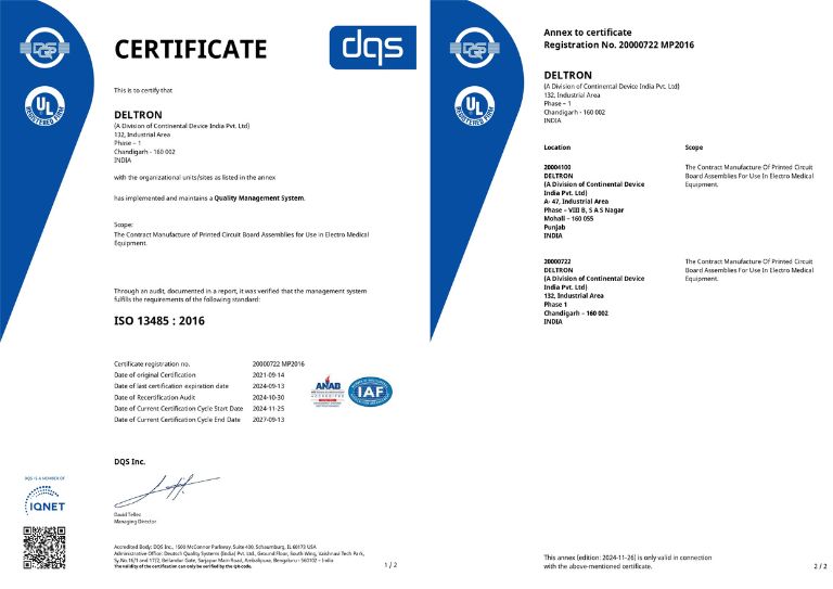Strategically located and very well connected with National Capital, New Delhi, Deltron’s manufacturing facilities at Chandigarh and Mohali are spread over 1,50,000 Sq. Ft. of modern environmentally controlled space. Certified to industry standards and customer requirements, facilities include modern SMT lines which support flexible volume high mix manufacturing.A comprehensive range of turnkey services includes complete functional,End of Line and reliability testing facilities.
